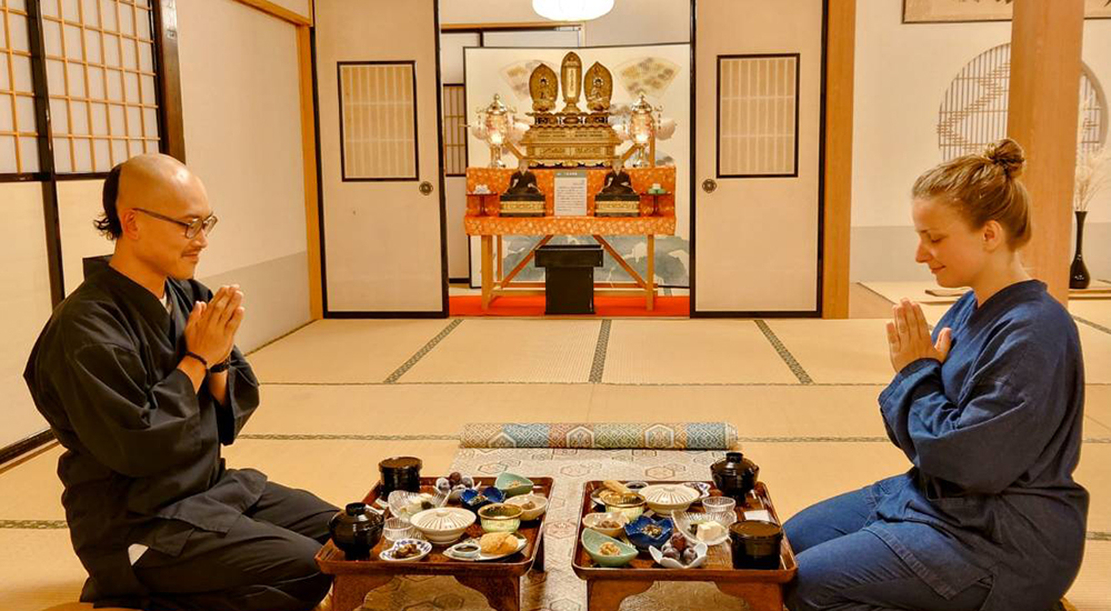During the evening service with guests, you may enjoy the dharma talk and exhibition of buddhist items. The meals are vegetarian, with no animal products even in the soup stock. We will also guide you through the morning service at Kuonji Temple. *Please note that we may not be able to accommodate your request due to the availability of priests.