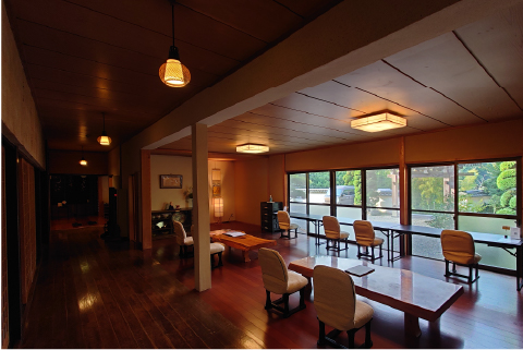 Shugenin Habanobo is one of them, with a history of over 740 years. Spending time at a "shukubo" is an ascetic experience, thus there are no TVs or other luxuries in the rooms or lobby. The temple grounds are located on a hill with a great view of Mt. Takatori and it is the only "shukubo" in the mountains with a view of Mt. Shichimen.